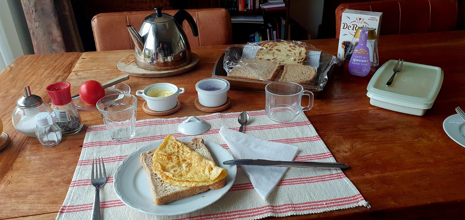 Tijdens het ontbijt vertelde mevrouw me dat ze al lange tijd weduwe was en dat ze er echt van genoot om voor gasten te zorgen. Het gaf haar structuur en zorgde voor waardevolle sociale contacten. Vroeger was ze boerin, vandaar dat ik werd getrakteerd op een smakelijk boerenontbijt.